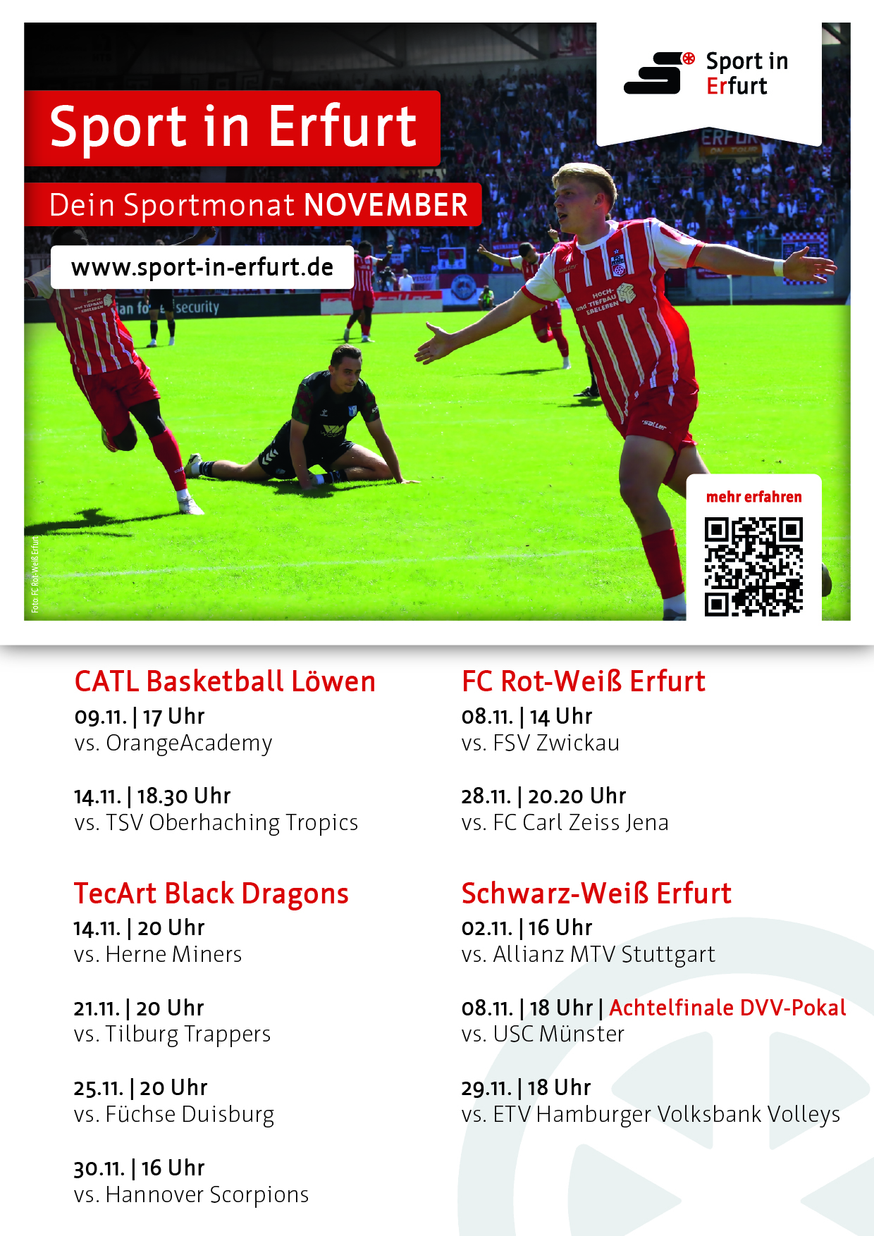 Quelle: https://www.sport-in-erfurt.de/sportkalender | 30.09.2025, 17:00 Uhr